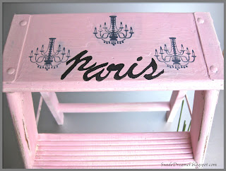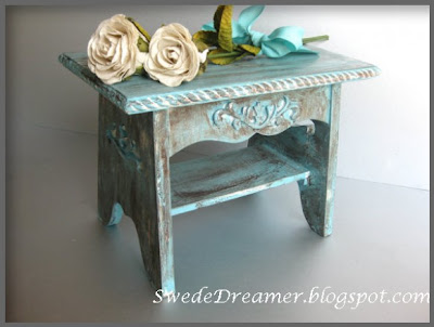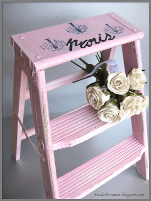 I am so honored to be Holly's guest blogger for the day! My name is Angie and I have my own blog over at Swede Dreamer where I share my dreamy inspirations from fashion and home decor to travel, food and the arts. There is also a good bit of vintage and cottage chic home that I often share with my readers from my shop on Etsy, Swede13 Inspirations. When Holly asked me to share a past or present project my mind began whirling...I have so many refurbished finds and treasures that I have created for my shop. I wanted to choose something for the cottage chic home and decided upon a shabby chic step ladder re-do. I had just stumbled upon a cute little one recently that I had planned to salvage~perfect timing! I will also share a handful of past step stool projects just for a little extra fun.