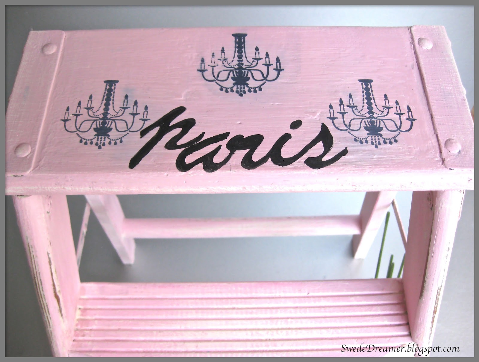 I am so honored to be Holly's guest blogger for the day! My name is Angie and I have my own blog over at Swede Dreamer where I share my dreamy inspirations from fashion and home decor to travel, food and the arts. There is also a good bit of vintage and cottage chic home that I often share with my readers from my shop on Etsy, Swede13 Inspirations. When Holly asked me to share a past or present project my mind began whirling...I have so many refurbished finds and treasures that I have created for my shop. I wanted to choose something for the cottage chic home and decided upon a shabby chic step ladder re-do. I had just stumbled upon a cute little one recently that I had planned to salvage~perfect timing! I will also share a handful of past step stool projects just for a little extra fun.